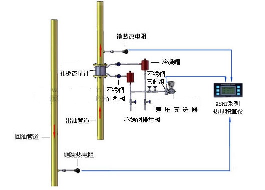 導(dǎo)熱油爐熱量計(jì)量系統(tǒng)安裝示意圖
